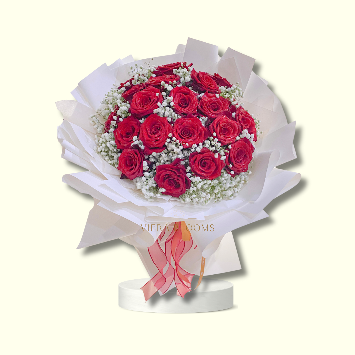 20 pcs. Red Roses with Gypso. Fresh Blooms that can last up to 3-4 days with minimal proper care.