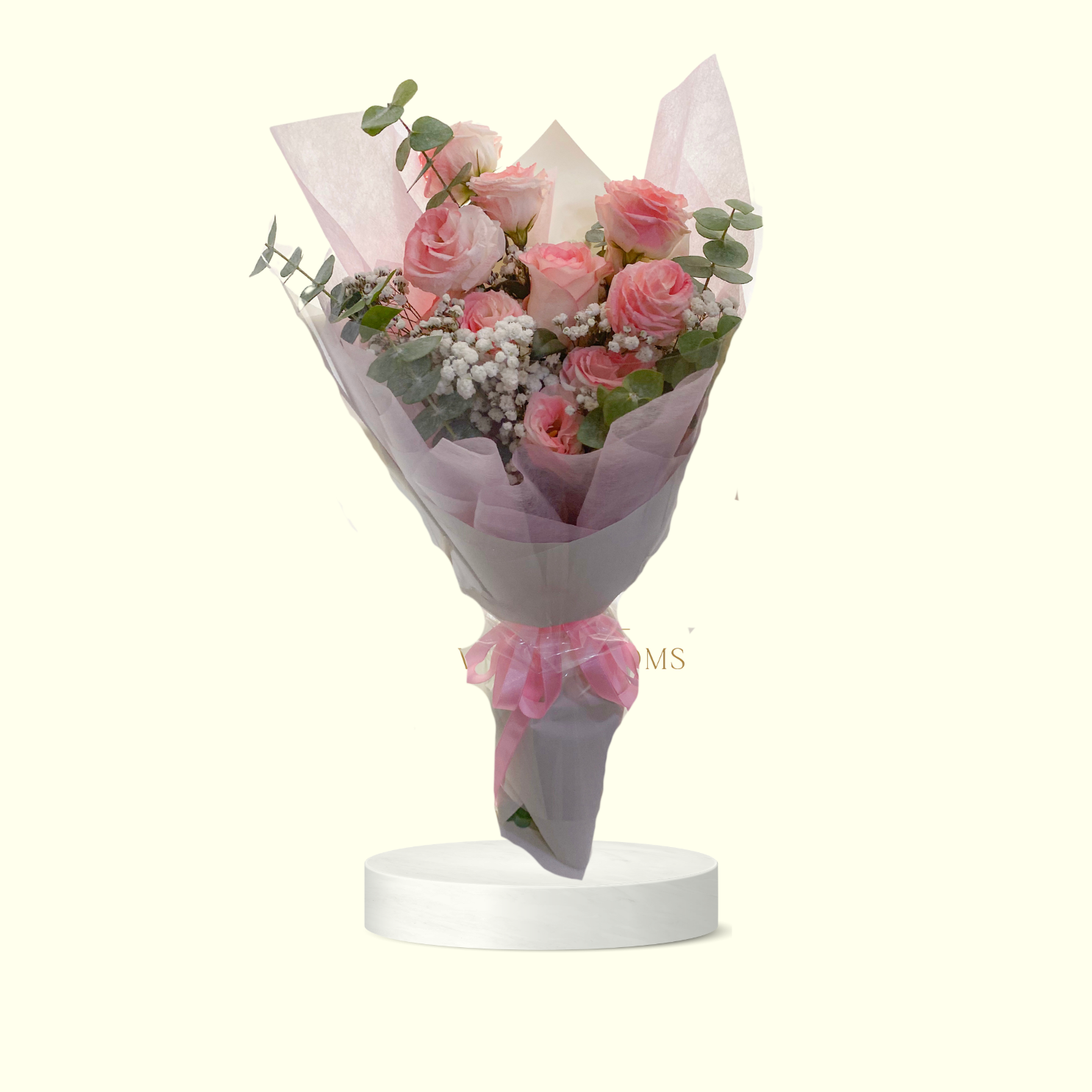 Please be advised that the floral and wrapping arrangement may vary from the sample picture, as each creation is crafted uniquely for you. The provided photos serve as visual aids, and subtle differences may arise. Kindly consider that the appearance of the flowers may be influenced by variations in brightness and contrast settings. Additionally, to ensure their freshness upon delivery, you might receive buds or flowers in various stages of bloom.