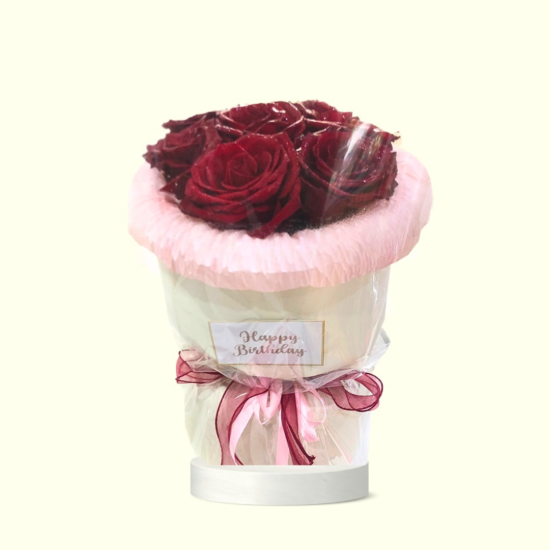 8 pcs Red Ecuadorian Roses Round Arrangement. Fresh blooms that can be transferred to vase and can last up to 3-5 days with proper care.