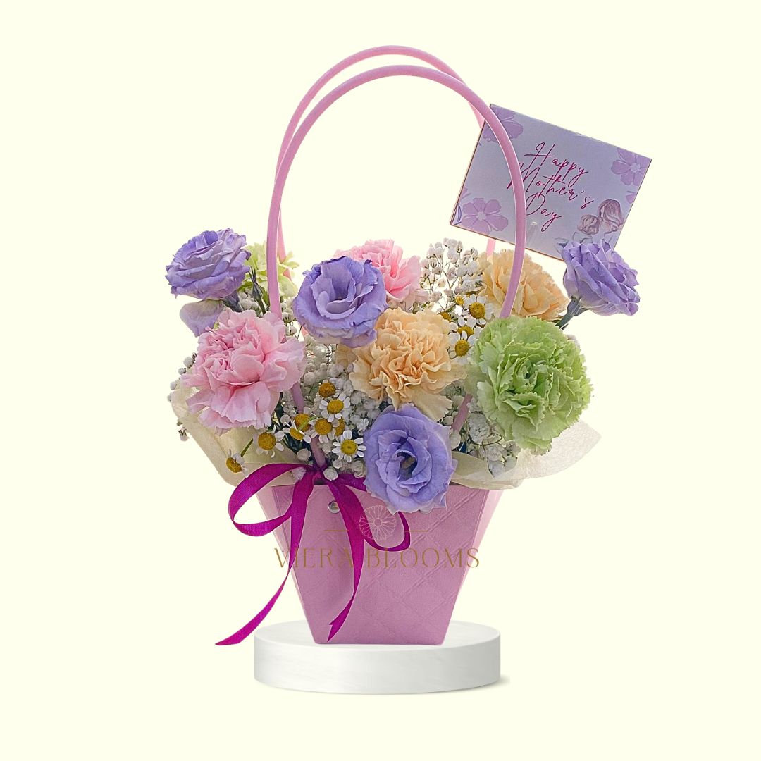 Combination of 6 pcs Carnations with gypso wrapped in cone arrangement . Fresh Blooms that can last up to 3-4 days with minimal proper care.